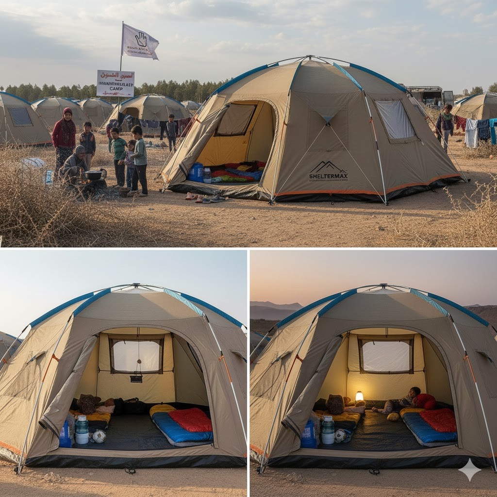 This humanitarian-grade camping tent is designed to provide temporary shelter for families during emergency response and outdoor relief operations.